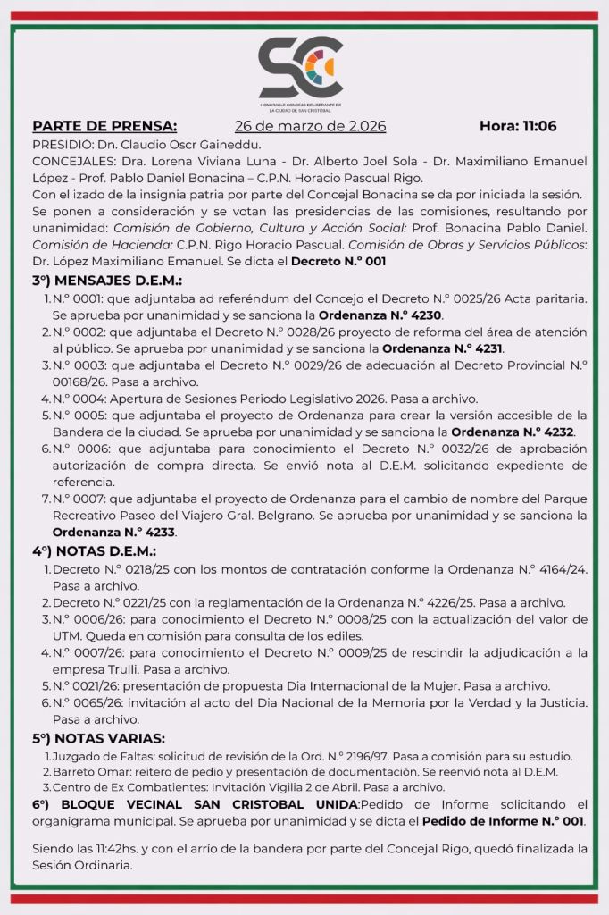 Parte de Prensa 26/03/2026
