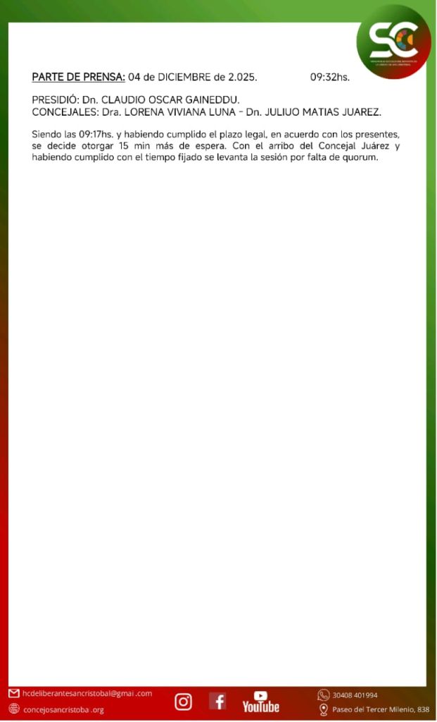 HONORABLE CONCEJO DELIBERANTE DE LA CIUDAD DE SAN CRISTÓBAL